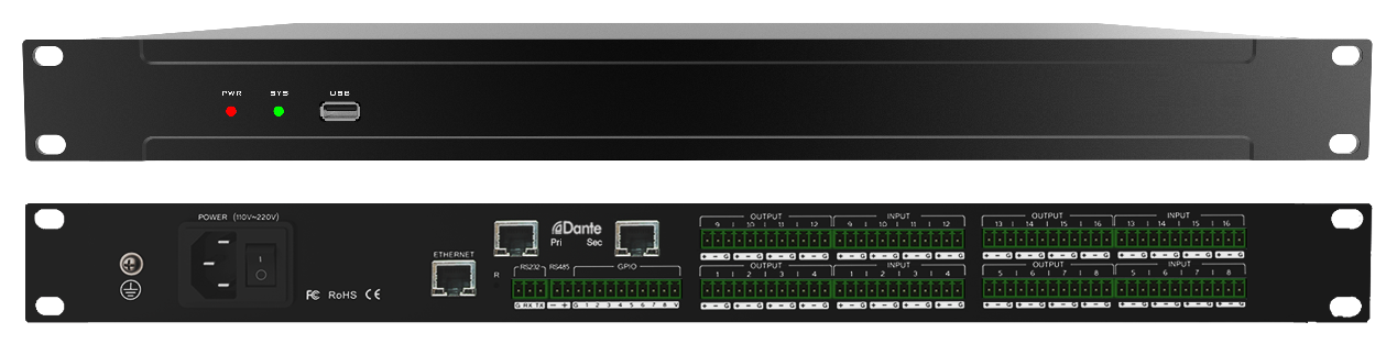 Gdy sygnały są kierowane do wzmacniacza dystrybucji wielu strefów, takiego jak MX-1616D z obsługą DANTE, system wybiera źródło sygnału audio ze strumienia audio, dekoduje go, a następnie przesyła go do dowolnego z 16 kanałów lub konfiguracji stref za pomocą amplifikacji macierzy.